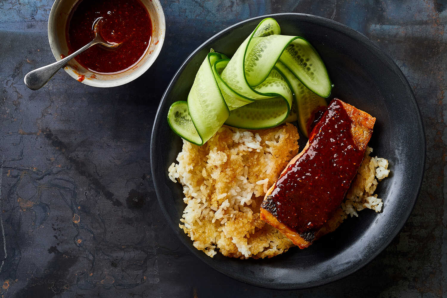 salmon, gachugarunwith crispy rice