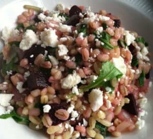 barley with beets, arugula and goat cheese